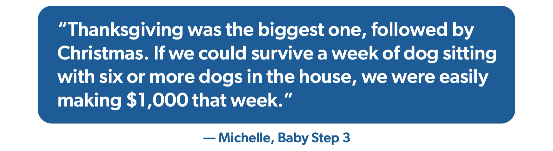 “Thanksgiving was the biggest one, followed by Christmas,” Michelle shared. “If we could survive a week of dog sitting with six or more dogs in the house, we were easily making $1,000 that week.”